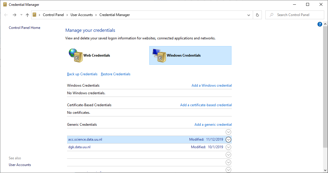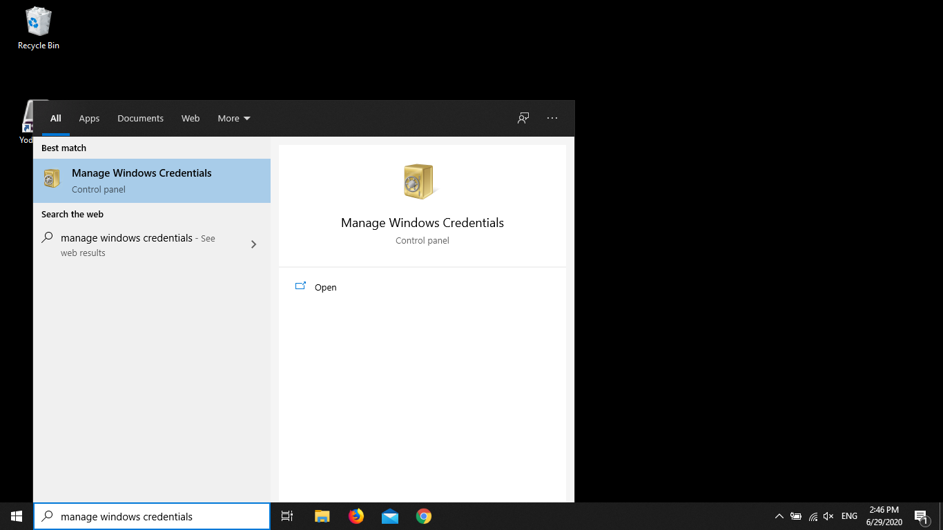 First open the credential manager by clicking on the start button and typing “Manage Windows Credentials”.