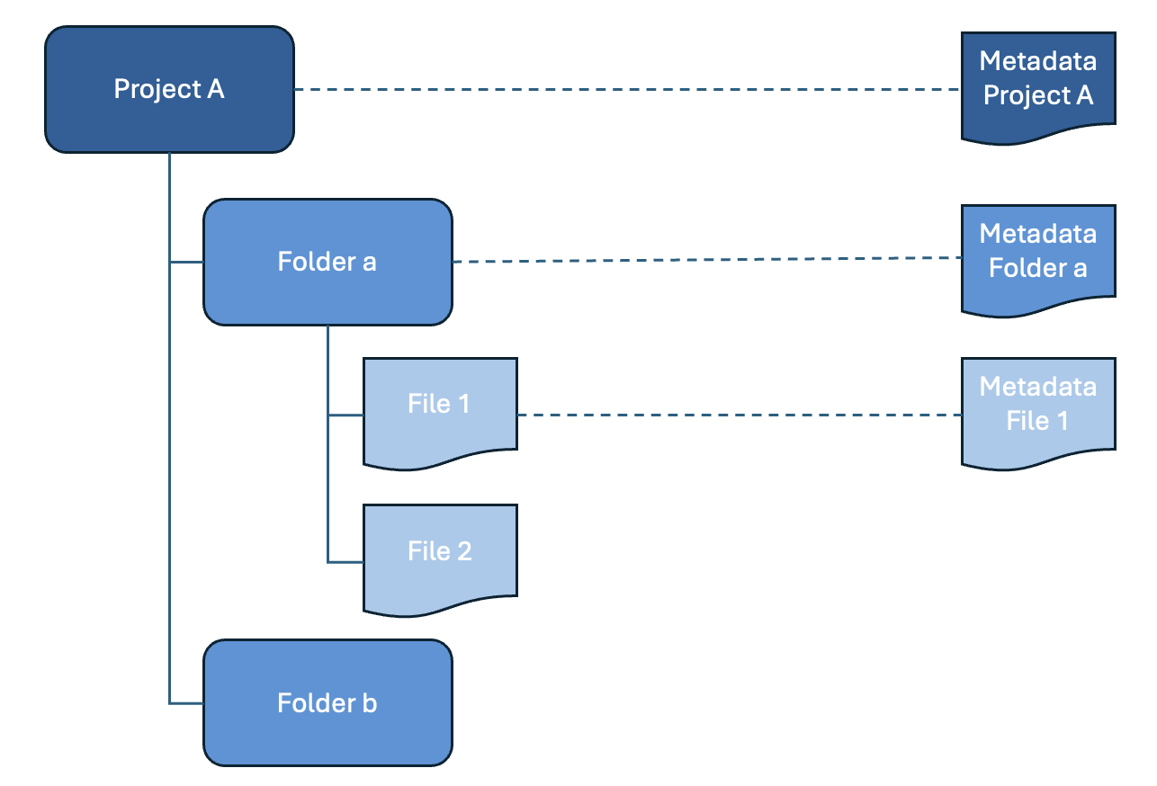 Finally a distinction can be made on the level of description. Metadata can be about the data as a whole or about part of the data. It can depend on the research domain and the tools that are used on how many levels the data can be described. In repositories like Yoda and DataverseNL it is common practice to only create structured metadata on the level of the data as a whole. The Consortium of European Social Science Data Archives (CESSDA) explains this distinction for several types of data in their Data Management Expert Guide.